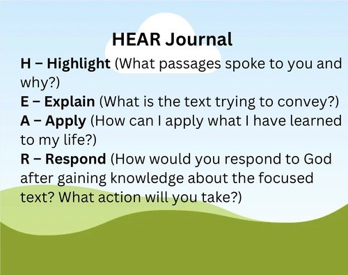 Reading and Journaling – During the week you read the assigned passage each day. Before we gather, we will journal what God is speaking through the passage.